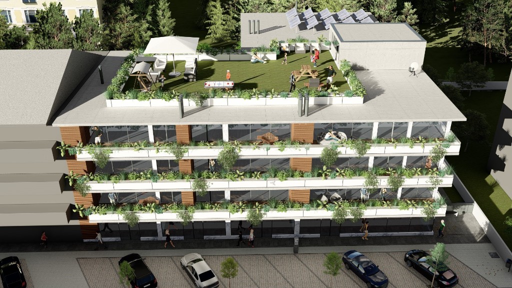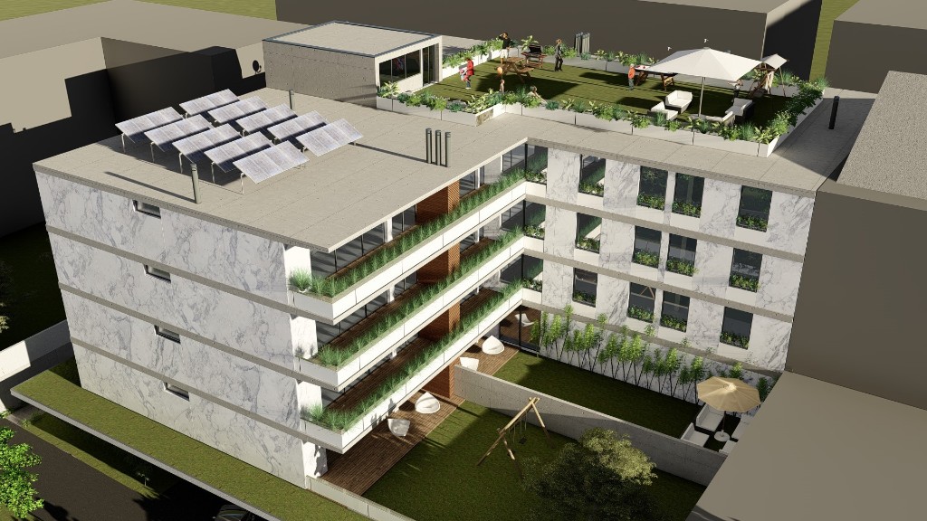 Em pleno centro da Vila, bem servidos de transportes públicos, escolas, serviços e lazer.