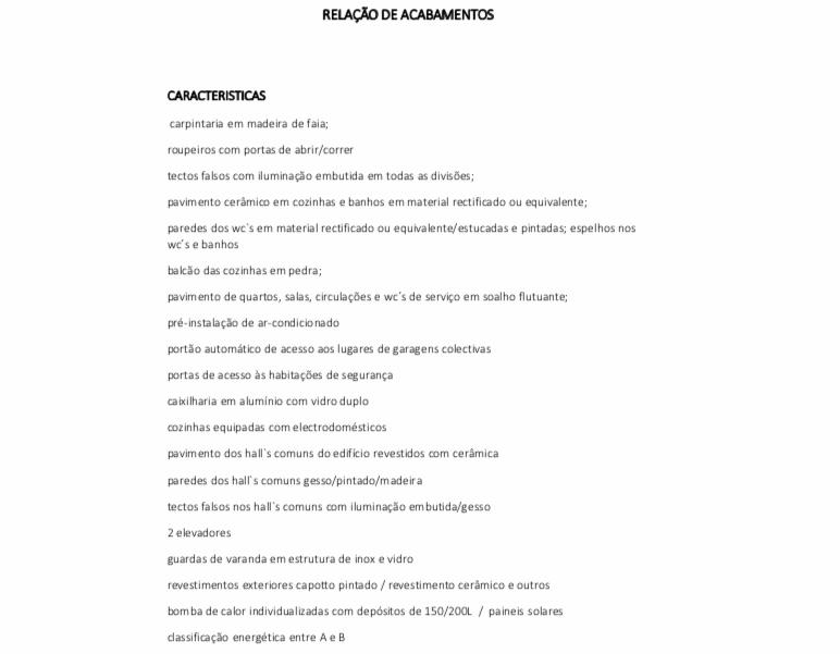 | Referência | Tipo | Tipologia | Área | Piso | Lugares de garagem | Preço |
