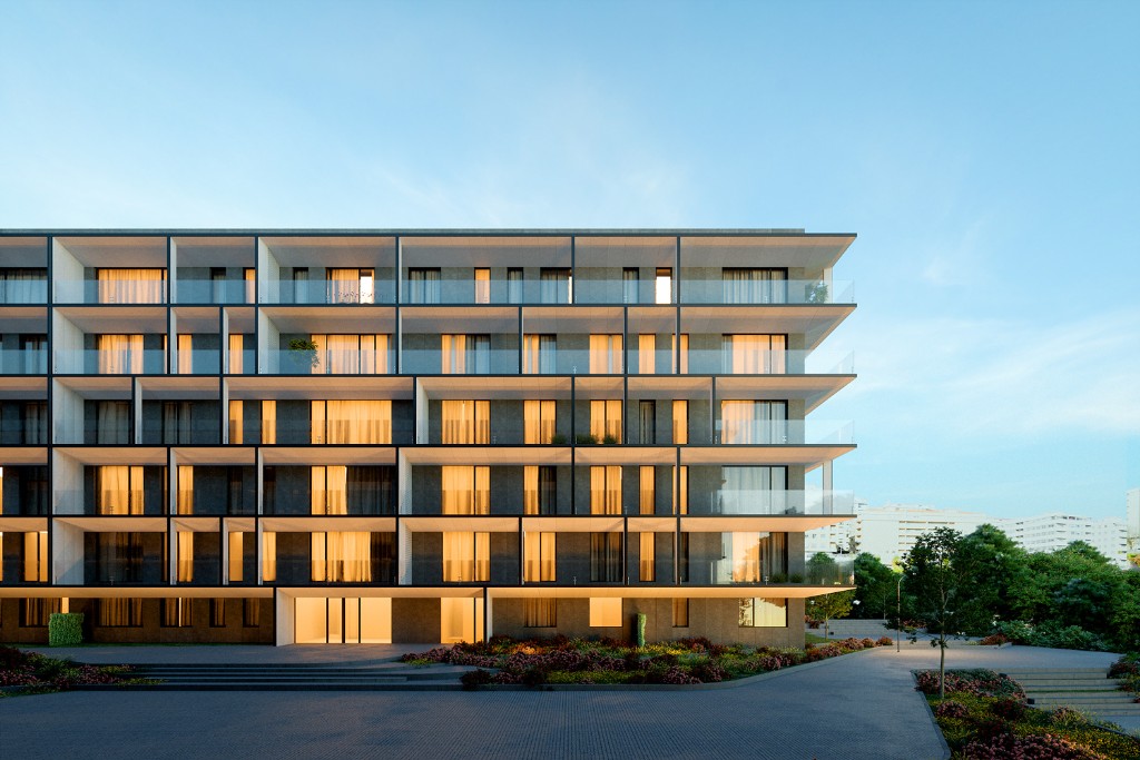Os apartamentos possuem elegantes e espaçosos espaços interiores com janelas e portas interiores do chão ao teto, proporcionando a entrada de luz natural por toda a sua casa. Dispõem ainda de varandas ou terraços privativos, com amplas áreas e vistas para os jardins que se estendem e unem à praça central verde de Paço de Rei.